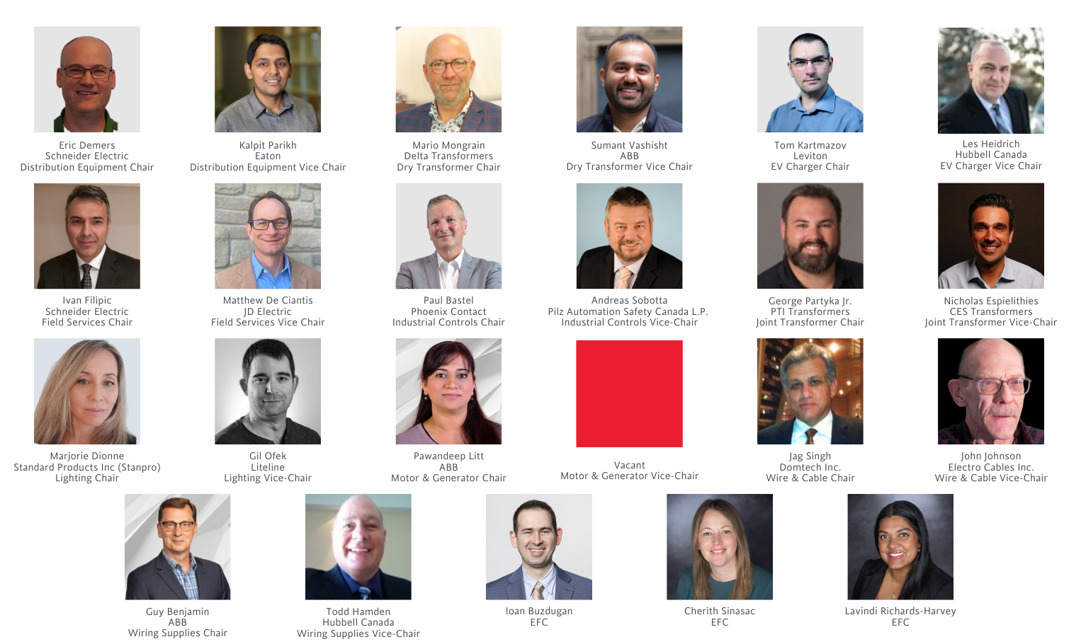 Chair: Mario Mongrain, Delta Transformers Vice-Chair: Sumant Vashisht, ABB EFC Business Section Manager: Lavindi Richards-Harvey